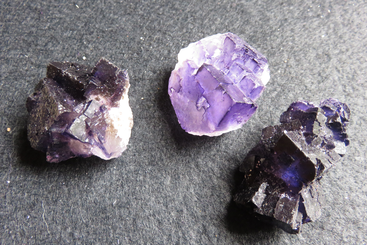 These pieces of purple flourite and lovely and have shapes to them. They are 4 cm wide.