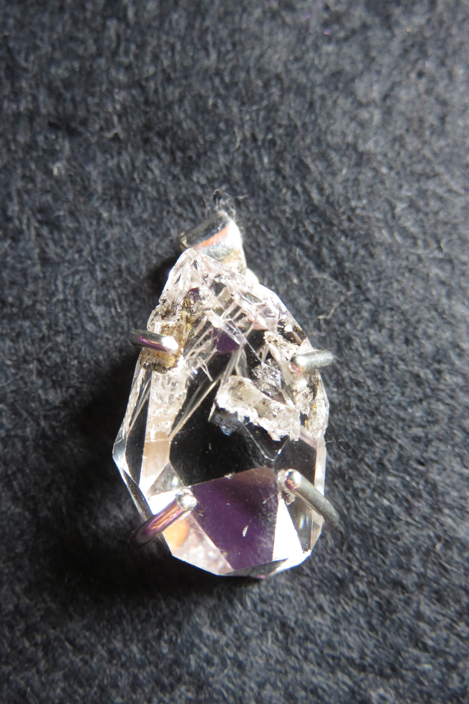 This double terminated crystal is quartz, the clearest of which can be found in Herkimer county NY. Sterling silver findings, 2.5 cm long.